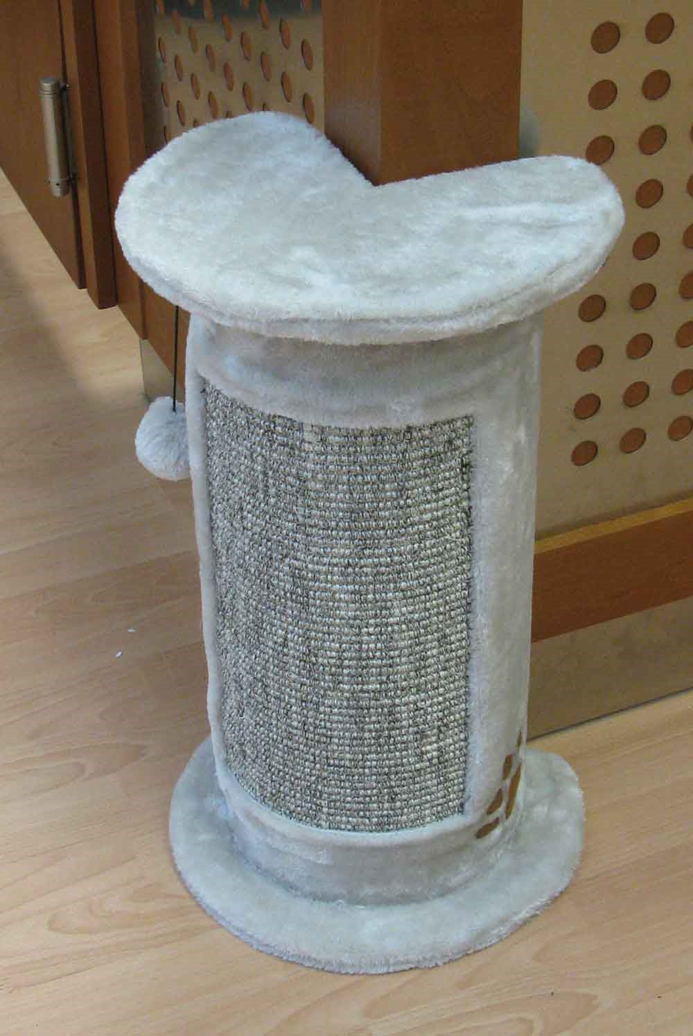 Einfalt en traust og hefur allt sem þú þarft fyrir góða klóru. Grunnplatan er klædd ljósgráu efni og miðjan klædd beige lituðu sísal, tágakörfur.