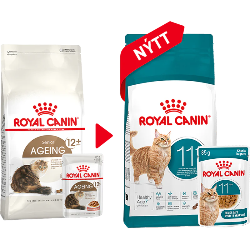Ageing 11+ fóðrið er sérstaklega framleitt til að mæta næringarlegum þörfum katta á þessum aldri með Healthy Age 7 Complex stuðningi við helstu þætti eldri katta.