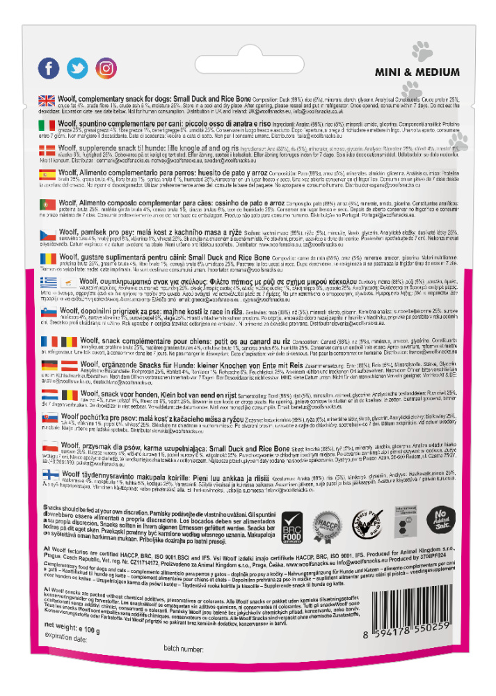 WOOLF - SMALL BONE OF DUCK AND RICE 100gr