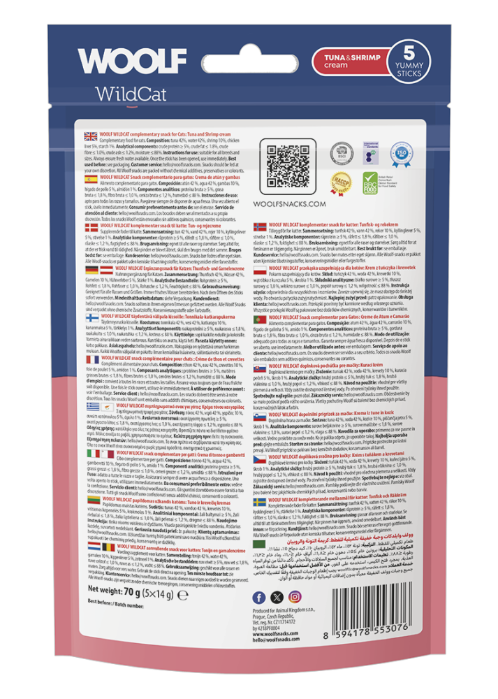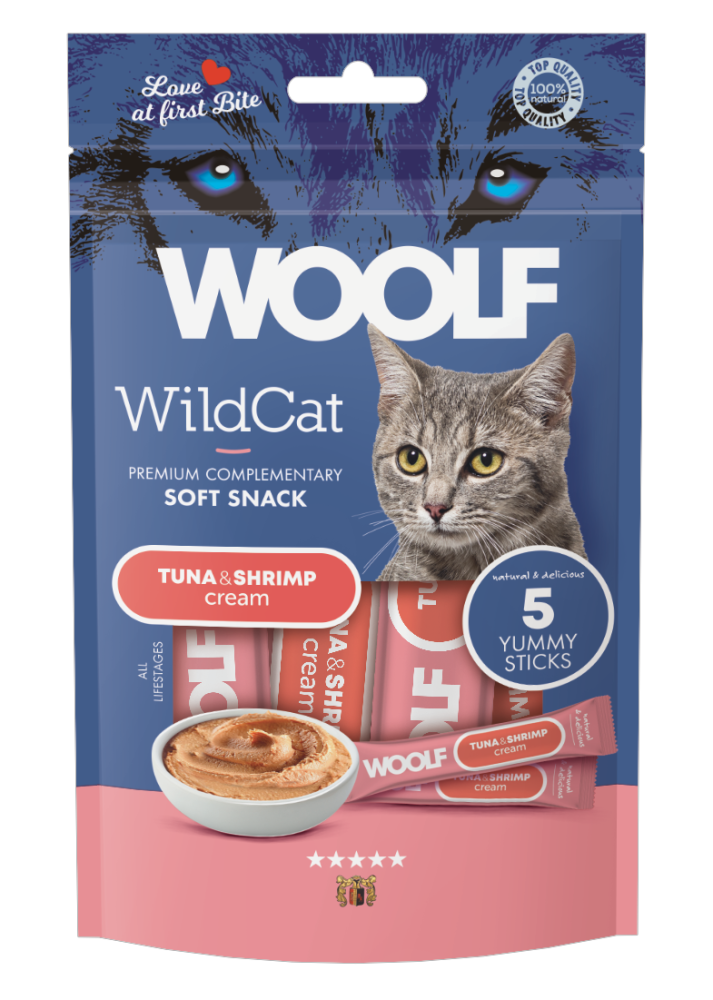 WOOLF WILDCAT Cream: TUNA & SHRIMP 5 stk/pk 70 gr